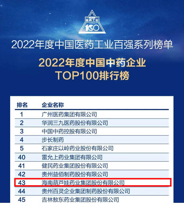 3522vip浦京集团药业集团连续4年荣登“中国中药企业TOP100排行榜”,排名上升至第43位
